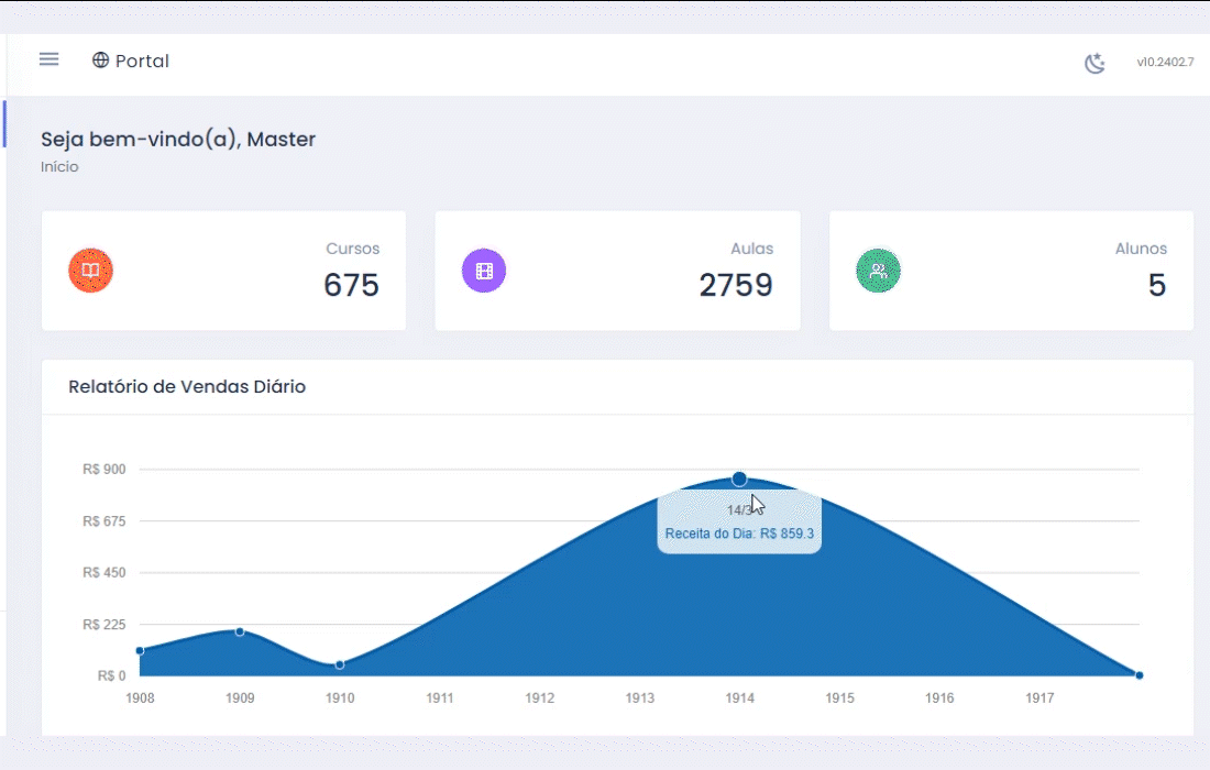 Com a plataforma da franquia digital você terá uma gestão profissional de todo seu negocio, tendo uma visão geral e detalhada sobre todos os cursos, desempenho dos alunos, controle operacional e financeiro das matriculas, vendas, afiliados, produtores de conteúdo e muito mais, acesse um demonstrativo de alguns destes recursos no botão abaixo.